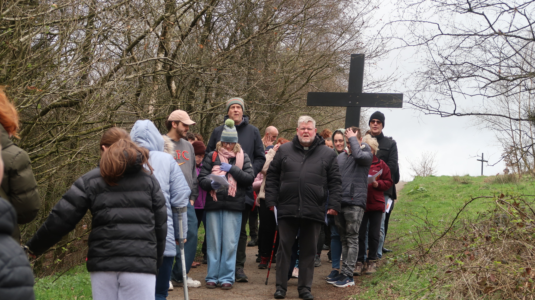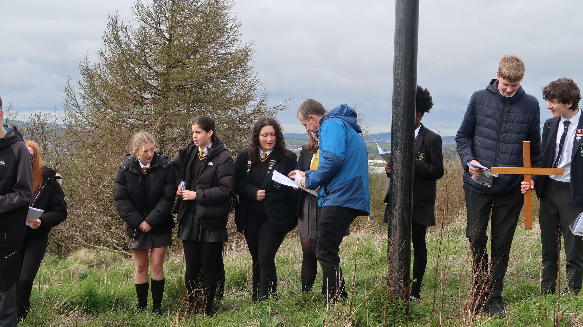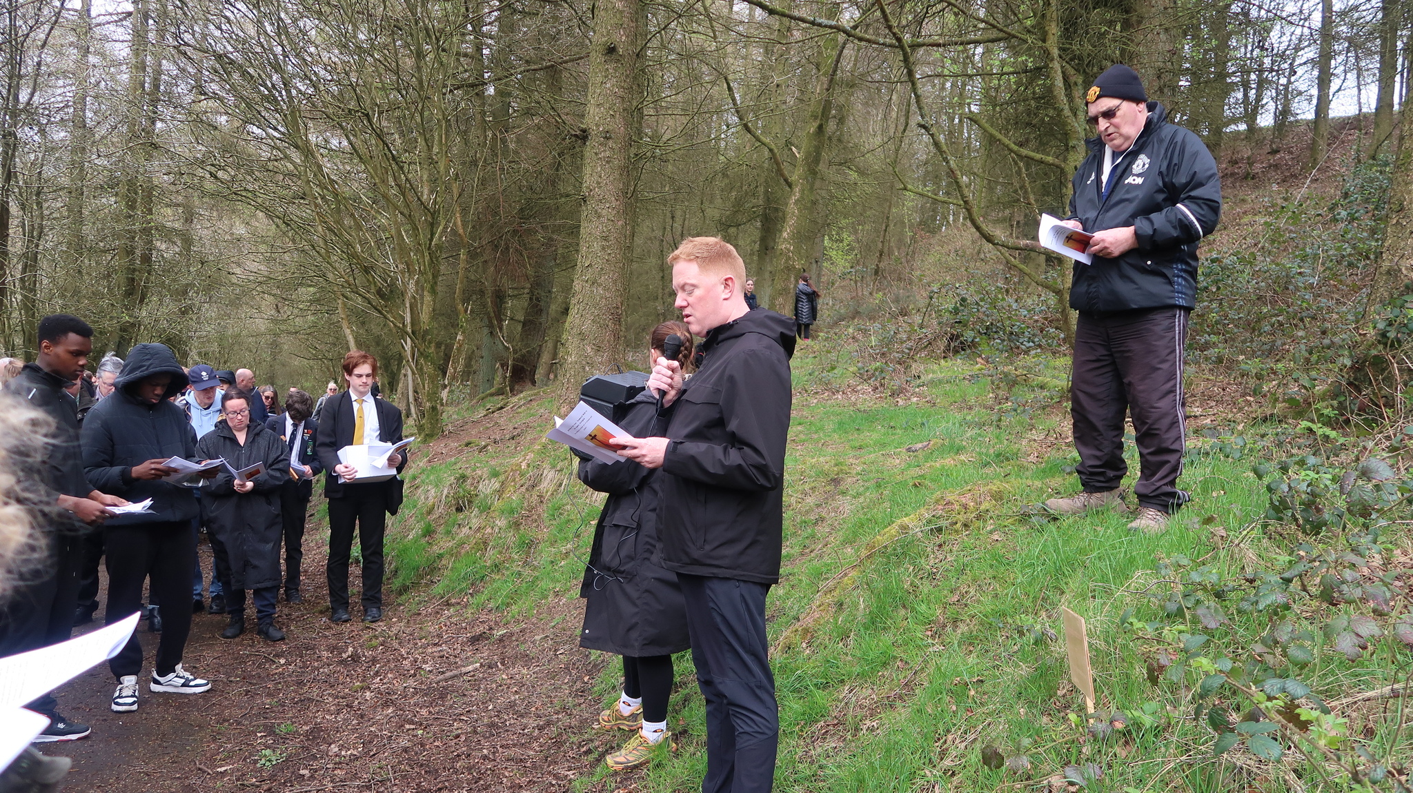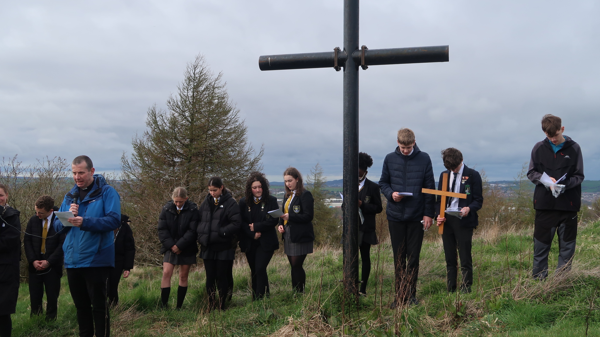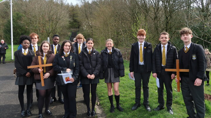 This inter-denominational prayer event involves pupil readers from Mount Carmel and St. Christopher’s, the two faith High Schools in the town. Prayers and short readings were read at each of the 14 stations of the cross along the path to the summit of the Coppice in Accrington.